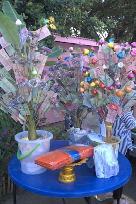 แม่บังอรเล่าให้เราว่า มีอยู่คืนหนึ่งแม่บังอรนอนและมีความรู้สึกกึ่งหลับกึ่งตื่น และได้ฝันเห็นพญานาคตัวใหญ่สามเศียรขนาดความยาวเท่ากับห้วยขมิ้นหันหน้ากลับมาทางบ้านแม่บังอร เพราะบ้านแม่บังอรอยู่ติดกับห้วยขมิ้น รุ่งเช้าแม่บังอรจึงได้ไปถ