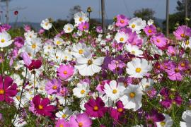 ดอกคอสมอส เป็นไม้ดอกไม้ประดับที่อยู่ในวงศ์เดียวกับดาวเรือง มีกลีบหลากสีตามสายพันธุ์ เช่น สีเหลือง สีแดงอมม่วง สีชมพู และขาว เป็นต้น เชื่อกันว่าดอกคอสมอสเป็นดอกไม้แห่งความสงบ ความสันติสุข ความตั้งใจ ความบริสุทธิ์ใจของหญิงสา
