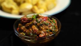 1. นำพริกแห้งมาล้าง แล้วนำไปคั่วในกระทะให้กรอบและหอม ระวังอย่าให้ไหม้ จากนั้นใส่ถ้วยพักไว้ก่อน