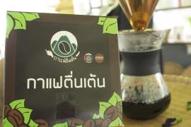“กาแฟตื่นเต้น” กาแฟดริปหอมกรุ่นหนึ่งเดียวของชุมชนท่องเที่ยวหมู่บ้านสุขสมบูรณ์ เมล็ดกาแฟสายพันธุ์อะราบิก้า (Coffea arabica) จากโครงการหลวงถูกนำมาปลูก ใต้ร่มสมุนไพรนานาชนิดในไร่ ได้รับการดูแลอย่างถนุถนอม ตั้งแต่