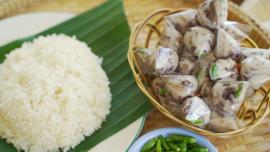 วัตถุดิบ ประกอบด้วย 1.เห็ดนางฟ้านึ่งสุก 2.ข้าวไรส์เบอรี่หุงสุก (ใช้ข้าวอะไรก็ไ