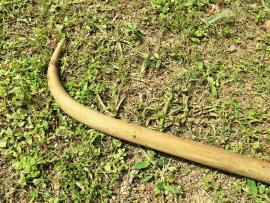มีลักษณะเป็นท่อนไม้ที่ถูกกลึงให้กลมรูปร่างคล้ายตะขอปลายงอเล็กน้อย