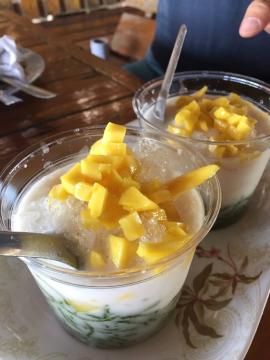 เป็นขนมที่มีใบชะครามเป็นส่วนประกอบในเมนู