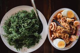 ขนมชะครามมะพร้าวอ่อน ส่วนผสม 1.ใบชะคราม 300 กรัม 2.หัวกะทิ 2 ถ้วยตวง 3.น้ำมะพร้าวน้ำหอม 1 ถ้วยตวง 4.เนื้อมะพร้าวน้ำหอม 1 ถ้วยตวง 5.แป้งมัน 2 ถ้วยตวง 6.แป้งข้าวเจ้า 1 ถ้วยตวง 7.น้ำมะพร้าวน้ำหอม 2 ½ ถ้วยตวง 8.น้ำตาลทราย 1 ถ้วยตวง วิธีการทำ 1.นำยอดชะครา