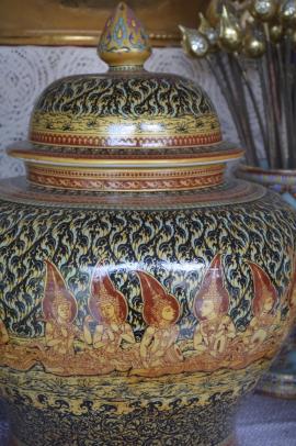 เป็นลายที่ได้รับอิทธิพลมาจากจิตรกรรมภายในผนังโบสถ์ ที่มีเหล่าเทวดาอยู่บริเวณประตูหรือหน้าต่าง ปัจจุบันมีทั้งที่เป็นลวดลายเส้นดำ และ เส้นทอง