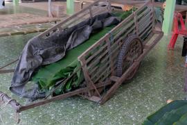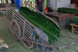 รถเข็น สำหรับใส่หรือลากใบตอง ภาษาถิ่นเรียกว่า "ล้อไส" "รถเสือก" หรือ "รถไส" เป็นยานพาหนะที่ชาวบ้านคลองกระจงใช้ในการลากใบตองสมัยก่อนทำจากไม้ทั้งคันรถและล้อ แต่ในปัจจุบันได้มีการเปลี่ยนแปลงมาใช้เป็นรถเข็นที่ทำจากเหล็ก และมีการใช้รถสามล้อหรือรถไถน้อยเข้ามาแทน