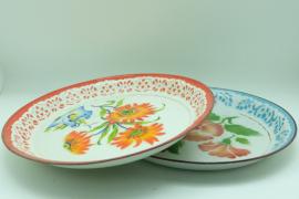 ถาดสังกะสีลายดอกขอบแดง เป็นถากรูปร่างกลมใช้ในการใส่ของใช้ในครัวพวกวัตถุดิบทำอาหารหรือใส่อาหารในปริมาณที่เยอะ