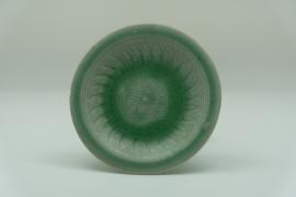 พานกระเบื้องเคลือบสีเขียวหยก