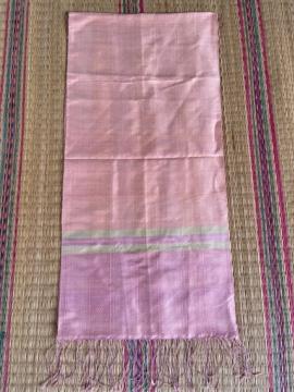 ผ้าพันคอลายดอกจิก โทนสีชมพูหวานๆ ทอด้วยความประณีต งานฝีมือชาวบ้าน