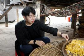 การสาวไหม คือ การดึงเส้นใยไหมออกจากรังไหมหลายๆรังในขณะต้มในน้ำร้อนผ่านอุปกรณ์สาวไหม มารวมเป็นเส้นเดียว โดยเส้นใยจะพันกันเป็นเกลียวทำให้เกิดการยึดเกาะของเส้นใยไหมทำให้ได้เส้นใยที่มีขนาดใหญ่มากขึ้นให้พอเหมาะสำหรับนำมาทอเป็นผืนได้ เส้นไหมที่ได้จึงมีความเหนียว ทนทาน และเลื่อมมันจากการหักแหของแสง ซึ่งไหมที่ได้จะเรียกกันว่า ไหมดิบ มีลักษณะเป็นเส้นไหมสีเหลือง และมันวาว ทั้งนี้ ก่อนเข้าสู่ขั้นตอนการสาวไหมต้องทำการคัดเลือกรังไหมเสียก่อน โดยการคัดเลือกรังไหมที่เสียออก เพื่อให้ได้เส้นไหม หากมีการสาวไหมโดยมีรังไหมที่เสียมาปะปนด้วยก็จะทำให้เส้นไหมที่ได้ไม่มีความเรียบ สกปรก ไม่เหนียว และขาดบ่อย