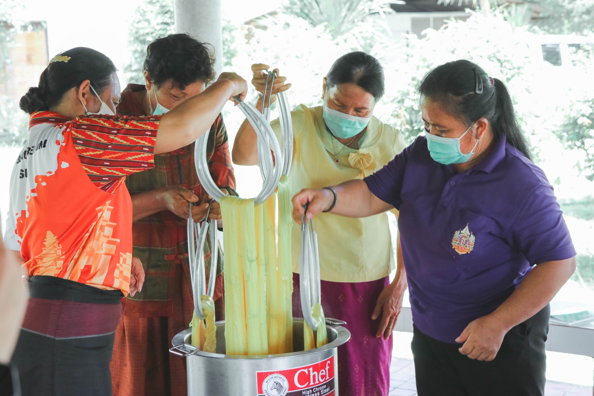 กิจกรรมเชิงปฏิบัติการการยกระดับผลิตภัณฑ์ การทำสบู่เหลวซักผ้าไหม
