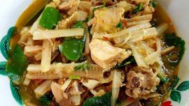 เป็นแกงโบราณที่นิยมทำในงานบุญงานบวช มีวัตถุดิบหลักคือ “หยวกกล้วย” หรือส่วนที่อยู่ส่วนแกนในของลำต้นกล้วย มีสีขาวนวล หยวกกล้วย เป็นส่วนของกล้วยที่มีใยอาหารช่วยดูดซับสิ่งสกปรกและสารพิษตามลำไส้ กระเพาะอาหาร อีกทั้งมีธาตุเหล