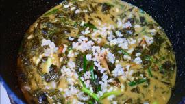 แกงขี้เหล็กคือหนึ่งในแกงกะทิที่สำคัญในครัว มีรสชาติขม มัน เผ็ดเล็กน้อย สิ่งที่ใส่ในแกง อาจเป็นไข่มดแดง ใบขี้เหล็กที่ต้มเสร็จแล้วนั้น ก่อนใส่ลงในแกง แม่บ้านจะตำให้เป็นชิ้นหยาบ หรือละเอียด ขึ้นอยู่กับความชอบของครอบครัว อย