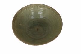 ชามปากกว้าง ขอบหนา ด้านในไม่มีลวดลาย ก้นตั้งตรงไม่เรียบไปกับตัวชาม เคลือบด้วยสีน้ำผึ้งเงางาม