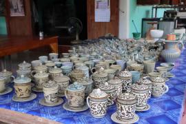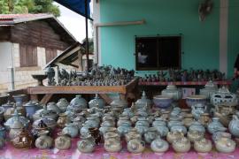 ชนิดแห่งพาณิชยกิจ เป็นการขายส่งเครื่องปั้นดินเผาและเครื่องครัว เครื่องปั้นดินเผาในหมู่บ้านยังคงอนุรักษ์ลวดลายและสีที่นำมาเคลือบเครื่องปั้นชนิดต่าง ๆ ซึ่งมีเอกลักษณ์เฉพาะตัว สำหรับงานปั้นขึ้นรูปจะใช้การปั้นด้วยมือ จากนั้นจะนำไปวาดลายลงสี และเข้าสู่ขั้นตอนการเคลือบด้วยขี้เถ้า ดิน หิน แร่ ตามสูตรโบราณที่ได้สืบทอดและนำไปเข้าเตาด้วยแก๊สมีความแตกต่างจากอดีต ซึ่งจะใช้ไม้ไผ่เป็นเชื้อเพลิง สำหรับการปั้นยังคงอนุรักษ์ในรูปแบบเดิม คือ วิธีเคลือบแบบเดิม แต่การออกแบบผลิตภัณฑ์สามารถเปลี่ยนแปลงได้ตามความต้องการและวัตถุประสงค์ของลูกค้า ซึ่งส่วนใหญ่จะเป็นของใช้ของประดับตกแต่ง สามารถนำไปใช้ในชีวิตประจำวันได้