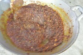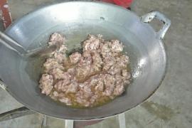 在 Nong O 的 Tai Krang 社区,有一个古老的泰国辣椒酱食谱,其特点是炒配料。 有时候厨师需要很长时间制作,直到锅变热甚至有点儿裂开的迹象。因此,村民们将这种古老的辣椒酱爆称为 “爆炸辣椒酱”。制作过程从加热锅开始,加入油直到油热,然后加入猪油和干甜椒混合的碎猪肉,撒上炸葱和炸大蒜。然后用虾酱、棕榈糖和罗望子汁调味,炒至干。这种辣椒味道醇厚,可以增加食欲。它不像普通辣椒酱那样有很辣的味道,所以很适合配着米饭直接吃。这种辣椒酱的秘诀是:用烤甜椒和橄榄枝叶配着吃。简直太好吃了!