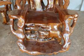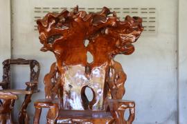 เป็นเก้าอี้ขนาดใหญ่ มีที่วางแขน และที่วางเท้า ด้านหลังมีการตีพนักพิงขึ้นมาในลักษณะโค้งตามลวดลายของรากไม้ที่เกิดขึ้นเองตามธรรมชาติอย่างสวยงาม