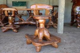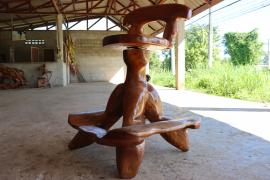 เป็นเก้าอี้ไม้ที่มีเทคนิคการเข้าไม้แบบสลักทำให้หมุนได้ ประกอบกับฐานที่มั่นคงเป็นการออกแบบโดยชาวบ้านที่สร้างสรรค์งานศิลปะ