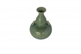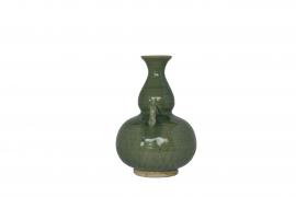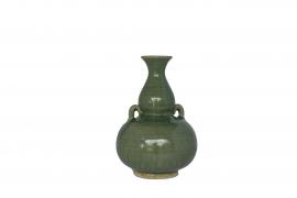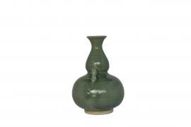 ขวดน้ำเต้า ทำขึ้นด้วยดินเหนียวเคลือบสีเขียว มีวงแหวนขนาดเล็ก ลำตัวป่องกลม มีหูสองข้าง คอค่อนข้างยาว และปากบานเอียงออก