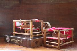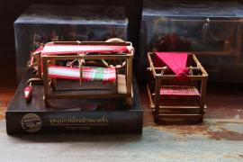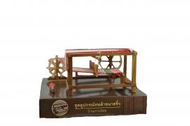 ประกอบด้วย โครงกี่ฟืม ไม้ม้วนผ้า หลักม้วนผ้า กระสวย เป็นการรวบรวมกรรมวิธีการทอผ้าให้เข้าใจได้โดยง่ายขึ้น เพราะบางคนรู้จักแต่เพียงผ้าทอ แต่ไม่รู้ว่ากว่าจะได้ผ้าทอแต่ละผืนต้องใช้อะไรในการทอบ้าง หน้าตาเป็นอย่างไร ชุดอุปกรณ์ผ้าทอขนาดจิ๋ว เป็นการนำไม้ที่เหลือจากการผลิตเฟอร์นิเจอร์ตอไม้และรากไม้มาผลิตเป็นชุดอุปกรณ์ทอผ้าขนาดจิ๋วที่มีย่อลงมาจากของจริงลงมาเหลือเพียง 12 x 10 เซนติเมตร มาพร้อมกับบรรจุภัณฑ์ที่มาพร้อมกับความโดเด่น น่าสนใจ เหมาะสมกับการซื้อเป็นของที่ระลึกจากบ้านเกาะน้อย สามารถใช้ขยับฟืมเล่น หมุนไม้ม้วนผ้าและหลักม้วนผ้าได้ จัดทำขึ้นเพื่อเป็นแบบจำลองในการประดับ ตกแต่ง หรือเป็นของที่ระลึก เป็นการอนุรักษ์ภูมิปัญญาท้องถิ่น และวิถีชีวิตดั้งเดิมของคนไทครั่ง