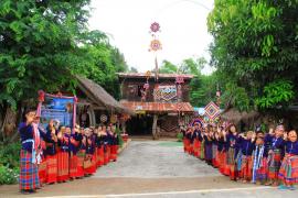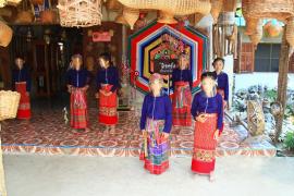 ในชีวิตประจำวันจะแต่งกายตามปกติ ยกเว้นในการจัดงานประเพณีหรืองานที่มีการรวมกลุ่มที่เป็นงาน ซึ่งแสดงออกถึงการรวมกลุ่มกัน ซึ่งแสดงออกถึงความสามัคคีของหมู่คณะหรือการรับแขกคนสำคัญของท้องถิ่น ผู้ชายจะมีผ้าขาวม้าคาดเอวเป็นลายตารางหมากรุก 5 สี ส่วนผู้หญิงจะมีการแต่งกายด้วยผ้าทอมัดหมี่ ต่อผ้าซิ่นตีนจก ซึ่งประกอบไปด้วยส่วนตัวผ้าซิ่น นิยมทอด้วยผ้ามัดหมี่ทอแซมสลับกับการ “ทอแบบขิด” เป็นลายทางเล็ก ๆ สีเหลืองหรือสีขาวคั่นระหว่างผ้ามัดหมี่ เพื่อแบ่งช่องลวดลายผ้าสลับเน้นลวดลาย วัตถุดิบที่ใช้ ได้แก่ ผ้าฝ้าย ผ้าไหม หรือใยสังเคราะห์ ส่วนสีแดงนั้นใช้เป็นลายซิ่นหรือเรียกกันว่าตีนซิ่น
