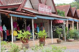 ร้านผ้าทอมือที่มีสินค้าหลากหลายแบบให้เลือกสรร อาทิ เสื้อผ้าและเครื่องแต่งกายท้องถิ่น