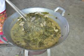 铁刀木咖喱是现在很多地方都不难找到的美食。其他有这种咖喱的地方都不如Nong O的铁刀木咖喱那么正宗,因为Nong O 手工采摘的绿豆保留着醇香的味道。并且没有铁刀木叶的苦味。做这道菜要从热锅炖椰奶开始,再加入咖喱酱,加入臭鱼酱、椰浆尾和其他调料。这种烹饪秘方不同于其他地方的咖喱。然后加入烤青豆,骨头、铁刀木叶、蔘露藤汁和羽叶金合欢。 这道咖喱的另一个秘诀在于精心挑选的铁刀木。Nong O 人只会选择生长在潮湿地方的铁刀木,因为白色的嫩芽不会有苦味。相反,生长在干旱树木中的植物容易产生苦味。看得出来,当地人从选料做咖喱开始,就已经很用心了。除了让食物味道鲜美, 铁刀木也被认为是一种泻药,也可以治疗肠胃胀气。