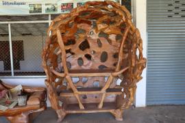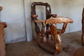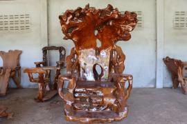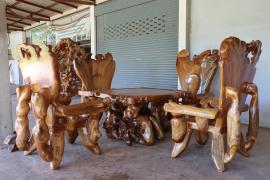 งานปฏิมากรรมที่เกิดจากตอไม้สักกลายเป็นชุดรับแขกเหมาะสำหรับเป็นโต๊ะรับแขกกลางแจ้ง หรือจัดสวนในพื้นที่ที่มีบริเวณบ้านกว้างขวาง
