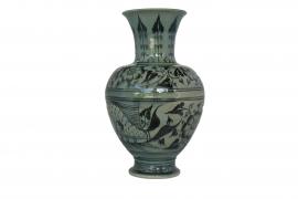 ลำตัวของแจกันค่อนข้างพองกลม คอค่อย ๆ บานออก ปากบาน และมีการวาดลวดลายตัวปลากาดำ เกล็ดปลา คลื่นน้ำ ซึ่งเขียนลายด้วยสีจีน