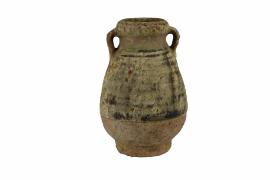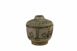 กระปุกขนาดเล็ก รูปทรงป่องออก ก้นไม่เรียบ และปากเล็กไม่บานออก เคลือบด้วยสีน้ำตาลที่ได้จากดินลูกรังบดละเอียด
