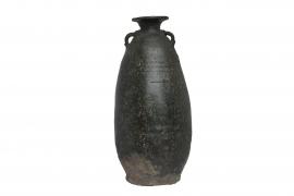 ทรงหมอบพร้อมหูหิ้วสองห่วง เคลือบสีเขียว เป็นแจกันโบราณในสมัยศรีสัชนาลัยที่ขุดค้นพบในหาดแม่น้ำยมมีลักษณะสมบูรณ์