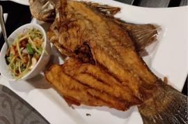 ยำมะม่วงกับปลามงทอดน้ำปลา