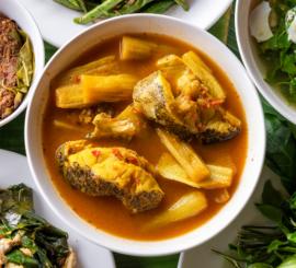 ต้มน้ำแกงเดือดใส่ปลาลงไป ใส่เกลือหรือน้ำปลาตามชอบเบา ๆ ไว้ก่อน เพราะกะปิอาจมีความเค็ม ค่อย ๆ ชิมให้เค็มเบาไว้ก่อน ปลาสุกใช้เวลาไม่นานราว 8-9 นาทีก็ใช้ได้ เติมน้ำมะนาวเพื่อปรุงให้รสชาติเปรี้ยว (ไม่นิยมใช้มะขามเปียก) ชาวใต้นิยมใช้ความเปรี้ยวจากมะนาว เขาคัน ส้มแขก มะขามสด ส้มโหนด และส้มจาก จะไม่ค่อยนิยมใช้มะขามเปียกนัก แต่ความเปรี้ยวจากมะนาวได้ทั้งเปรี้ยวแหลมและความหอม ใส่ออดิบลงไป เร่งไฟจนเดือดแล้วปิดไฟ พร้อม ปิดฝาทิ้งไว้ไม่ต้องคน ต้องการกินแบบกรอบนอกนุ่มในการใช้น้ำตาลทรายเพื่อตัดรสให้กลมกล่อมก็ไม่ควรใส่แยะ แค่ช้อนเดียวก็ช่วยได้ รสชาติน้ำแกงจะดีขึ้น ไม่เปรี้ยวแหลมเกินไป ชิมน้ำแกงมีรสเปรี้ยวนำ