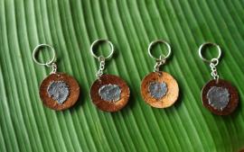 ของที่ระลึกจากกะลามะพร้าว ได้เชื่อมโยงกับเรื่องราวรางแร่โบราณในพื้นที่บ้านท่าดินแดง โดยการนำกะลามาทำ เลียงจำลอง ในรูปแบบพวงกุญแจ