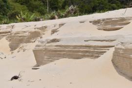 การพังทลายของชายหาดจากแรงลมสาเหตุของการกัดเซาะชายฝั่งที่ทำให้เกิดการพังทลายโดยทั่วไปนั้น ประกอบด้วย 1. สาเหตุตามธรรมชาติ คือ การเพิ่มขึ้นของระดับน้ำทะเล การพังทลายของหน้าผาลดลง ทำให้ปริมาณตะกอนทดแทนมีปริมาณน้อย ปริมาณตะกอนจากทะเลที่พัด