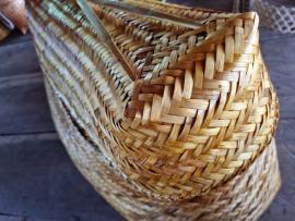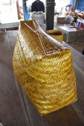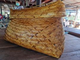 เครื่องจักสานไทยทรงดำ ภาชนะไม้สาน มีฝาปิด ประโยชน์ใช้สอยคือ สําหรับเก็บผ้าที่ทอเสร็จแล้ว จะเป็นผ้าผืนหรือเป็นผ้าส่วนตัว ขมุกเก็บไว้บน เพดานบ้านโดยไม้ไผ่พาดขื่อบ้าน