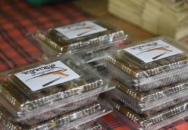 桂皮大米焦糖是潘人在农历十月节时做的一种传统甜点,至今仍保持着古老的制作方法。制作过程中添加桂皮草药(或肉桂藤)以产生独特的香气和风味。制作大米焦糖首先将糯米浸泡在椰奶中,再放入桂皮水,加热然后搅拌糯米至熟,加入椰浆和椰糖,继续搅拌一个小时直到大米焦糖不粘在手指上。桂皮大米焦糖具有椰奶和椰子糖的甜味和芳香味,以及桂皮的草药香,粘而耐嚼,是潘人的功德仪式中的一道传统甜点。收获季节桂皮大米焦糖也会分享给帮助收割庄稼的农民。潘人经常将桂皮大米焦糖、花生糖、红糯米和绿豆沙炸糕的甜点套餐应用于各种仪式。
