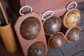 ผลิตภัณฑ์จากกะลา อาทิเช่น ปิ่นโตกะลา โคมไฟกะลา เข็มขัดจากกะลา ที่นวดเท้าจากกะลา