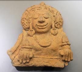 ประติมากรรมดินเผารูปสตรี ประดับศาสนสถานสมัยทวารวดี สูงประมาณ ๒๖ เซนติเมตรศิลปะทวารวดี ราวพุทธศตวรรษที่ ๑๓ – ๑๔ (ประมาณ ๑,๒๐๐ – ๑,๓๐๐ ปีมาแล้ว พบที่เมืองโบราณอู่ทอง จังหวัดสุพรรณบุรีปัจจุบันจัดแสดง ณ ห้องอู่ทองศรีทวารวดี พิพิธภัณฑสถาน