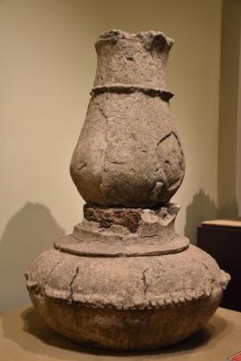 รูปเคารพในศาสนาฮินดู แกะสลักจากหินทรายสีเขียว ด้านบนปรากฎพระพักต์ของพระศิวะ นับเป็นโบราณวัตถุชิ้นสำคัญที่สะท้อนให้เห็นว่า นอกเหนือจาก