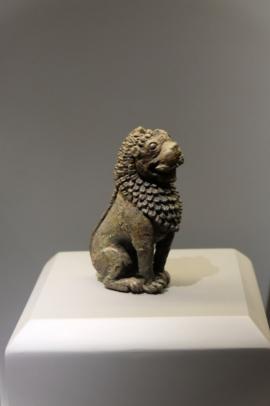 ศิลปะทวารวดีกำหนดอายุราวพุทธศตวรรษที่ ๑๓ - ๑๔ (ประมาณ ๑,๒๐๐ – ๑,๓๐๐ ปีมาแล้ว) ปัจจุบันจัดแสดง ณ ห้องบรรพชนคนอู่ทอง พิพิธภัณฑสถานแห่งชาติ อู่ทอง ประติมากรรมสำริดรูปสิงห์ ชิ้นนี้ พบจากเจดีย์หมายเลข ๑๓ เมืองโบราณอู่ทอง เป็นประติมากรรมขนาดเล็