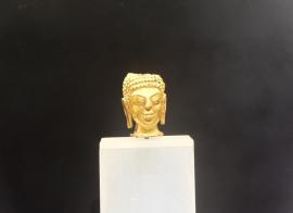 ชิ้นส่วนปูนปั้นศิลปะอินเดียแบบอมราวดี ประมาณพุทธศตวรรษที่ 9 – 10 หรือราว 1,600 – 1,700 ปี ลักษณะชิ้นส่วนปูนปั้นภาพพระพุทธรูปนาคปรกชำรุดเหลือเฉพาะส่วนฐาน เป็นภาพพระพุทธเจ้าประทับขัดสมาธิไขว้พระบาทหลวมๆ แสดงถึงศิลปะอมราวดีของอินเดีย พระหัตถ
