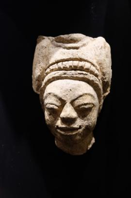 ศิลปะทวารวดีประมาณพุทธศตวรรษที่ 12 - 13 หรือราว 1,300 – 1,400 ปีมาแล้ว ลักษณะศรีษะบุคคลต่างชาติทำด้วยปูน หันด้านข้างสวมหมวกทรงกรวยแหลม ลักษณะคล้ายหมวกของชาวอาหรับ สันนิษฐานว่าน่าจะเป็นรูปของพ่อค้าที่เดินทางมาค้าขายระหว่างตะวันออกกลางกับดิ