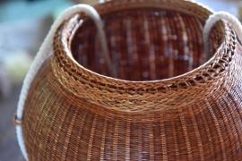 เครื่องจักสานไทยทรงดำ เป็นภาชนะที่สานด้วยไม้ไผ่รูปทรงเหมือนตุ่มคอสูง มีฝาสวมครอบ มีฐานสี่เหลี่ยม มี สายสะพายสานแบบลายฟองดีหล่ม ใช้สําหรับใส่ข้าวเหนียวที่นึ่งแล้ว ไว้สําหรับใส่อาหารหิ้วไปรับประทาน เวลาออก