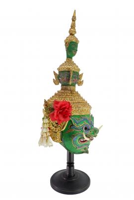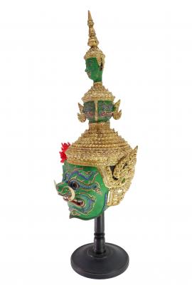 ลักษณะหัวโขน ทำเป็นหน้ายักต์ ๓ ชั้น คือ ชั้นแรกมีหน้าปกติ ๑ หน้า และมีหน้าเล็ก ๆ เรียงกัน ๓ หน้าตรงท้ายทอย ชั้นที่ ๒ ทำเป็นหน้าเล็ก ๆ ๔ หน้า เรียงสีด้าน ชั้นที่ ๓ ทำเป็นหน้าพรหมด้านหน้า หน้ายักด้านหลัง ปากแสยะตาโพลง สวมมงกุฎยอดชัย หน้าทศกัณฐ์มี ๓ สี คือ ปกติใหน้าสีเขียว ตอนนั่งเมืองใช้หน้าสีทอง และมีหน้าสีน้ำรักซึ่งยังไม่มีปรากฏใช้ในการแสดง