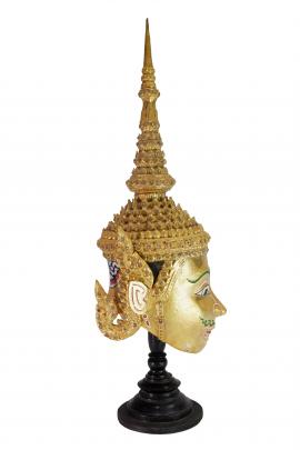หน้าพระสีทอง สวมมงกุฎยอดชัย บางครั้งจะสวมมงกุฎยอดเดินหน พระมหามงกุฎ ตอนทรงพรต สวมชฎายอดบวชหรือชฎายอดบวชฤๅษี