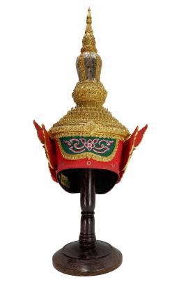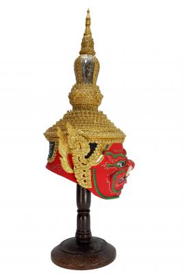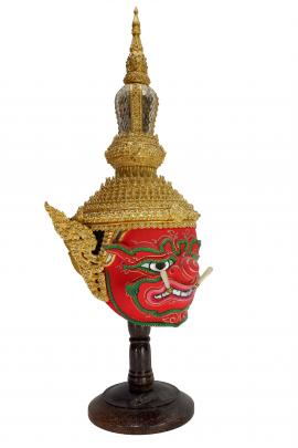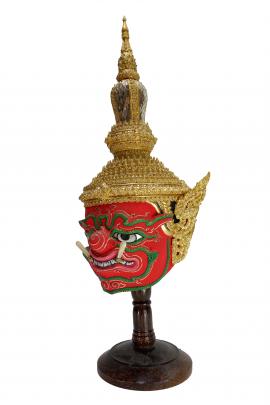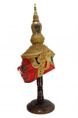 หน้ายักษ์สีแสดหรือแดง หรือแดงแสด บางตำราว่าสีเหลืองอ่อน ปากขบ ตาจระเข้ สวมมงกุฎน้ำเต้าเฟือง เป็นโอรสทศกัณฐ์กับนางกาลอัคคี