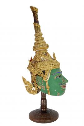 หน้าพระสีหงเสนหรือสีเขียว หรือสีเขียวใบแค หัวโขนบางหัวจะมีลายเป็นวงพักขิณาวัฎที่บริเวณใบหน้า มีลักษณะทำเป็นหน้าหนุ่มหรือหน้าแก่สวมชฎายอดบวชยอดของคนธรรพ์ เป็นเทพเจ้าแห่งวิชาดนตรี ขับร้อง และดีด สี ตี เป่า