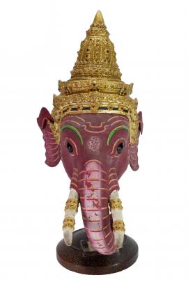 ลักษณะหัวโขน หน้าเป็นช้างสีแดง สวมเทริดยอดน้ำเต้าเป็นเทพเจ้าแห่งความรู้ เป็นโอรสพระอิศวรกับพระอุมา มีรูปลักษณ์เป็นมนุษย์ อ้วนเตี้ยท้องพลุ้ย หูยาน มีเศียรเป็นช้าง มีงาข้างเดียว