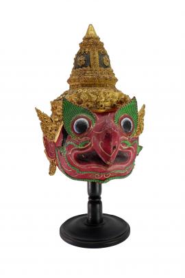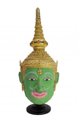 หน้าพระสีเขียว หัวโล้น ที่ผมเขียนเป็นลายดอกไม้ หัวโขนอีกแบบหนึ่งโพกผ้าหรือสวมมงกุฎน้ำเต้า หรือเทริดยอดน้ำเต้า เป็นเทวดานายช่างของพระอินทร์